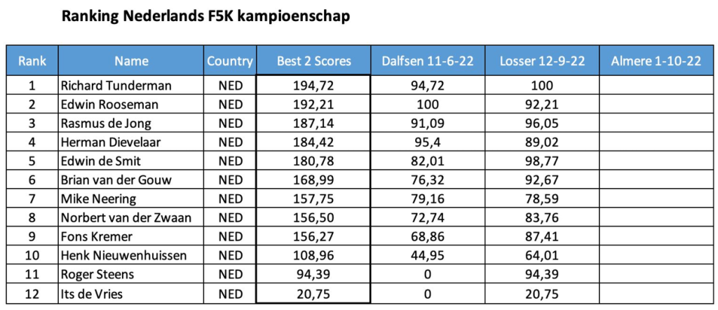 Eindstand NK-F5K 2022: