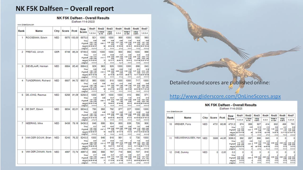 Nadat we twee wedstrijden tellend voor het NK-klassement hebben gevlogen is de einduitslag bekend: