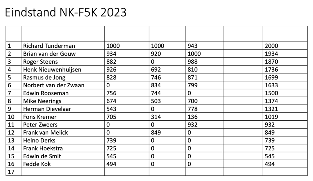Hieronder vind je alle uitslagen van de 3 wedstrijden die in 2023 zijn gevlogen.